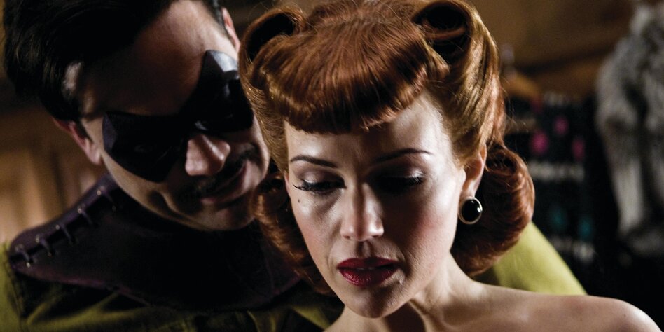 IMG Bild: Synders Film von 2009: Superheld „The Comedian“ (JD. Morgan) mit Silk Spectre (C.Gugino)