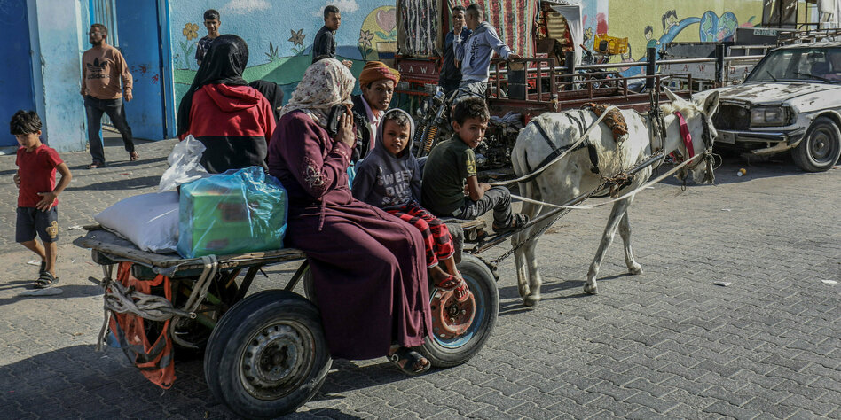 IMG Bild: Eine palästinensische Familie im Gazastreifen auf der Flucht nach Süden