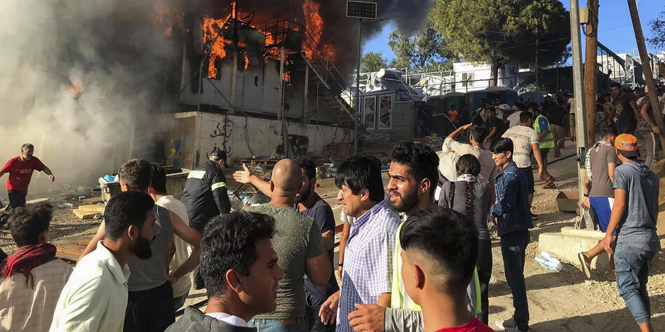 Berlin taz | Nach einem Brand in einem Flüchtlingslager auf der