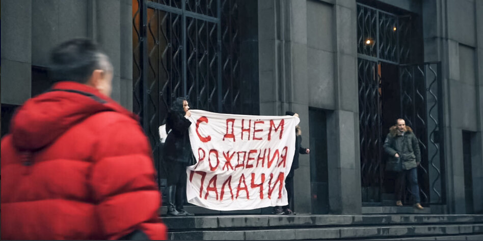 IMG Bild: „Glückwünsche zum Geburtstag, ihr Schlächter!“ Protestaktion vor dem Sitz des Geheimdienstes FSB am 20. Dezember 2017 in Moskau