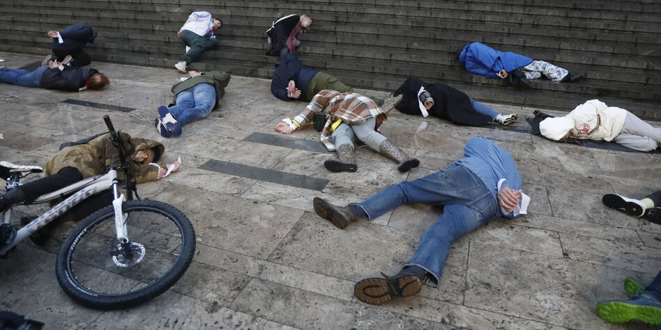 Transparent viral, auf dem zu lesen ist: „Putin tötet Menschen in der