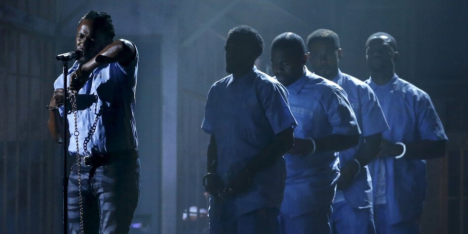 IMG Bild: Black Lives Matter: Kendrick Lamar bezog mit seinem Auftritt Stellung zur hohen Verhaftungsquote von Afroamerikanern.