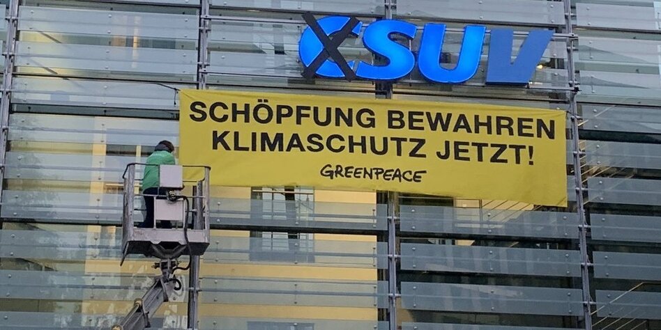 Umweltschützer von Greenpeace die Klimapolitik der Union angeprangert.