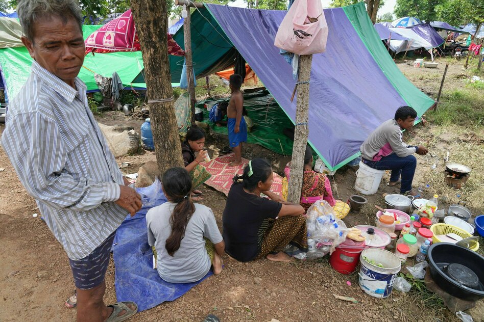 IMG Bild: Kambodschanische Evakuierte in einem Camp für aus der Grenzregion geflohene Zivilisten am Dienstag, dem ersten Tag der Waffenruhe
