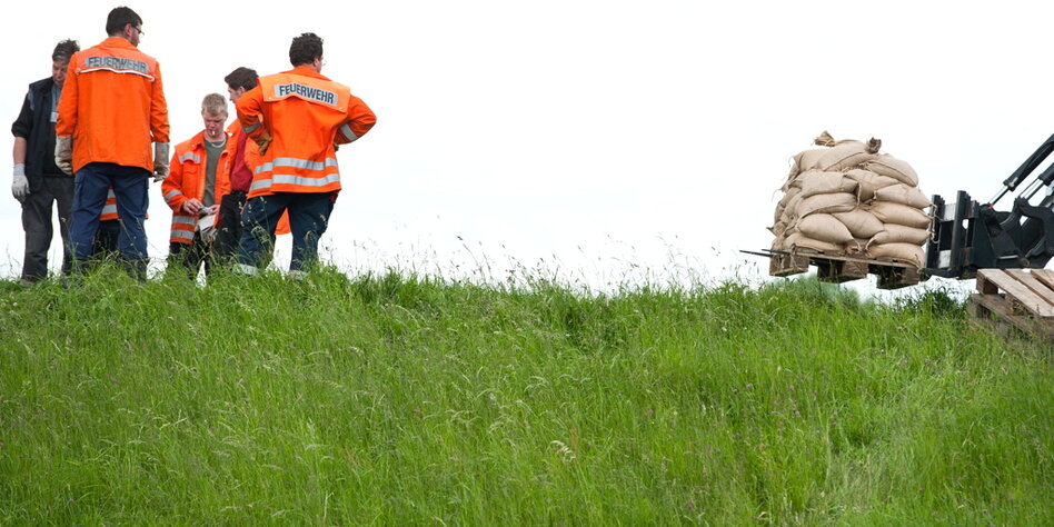 IMG Bild: Im niedersächsischen Hitzacker werden die Deiche verstärkt.