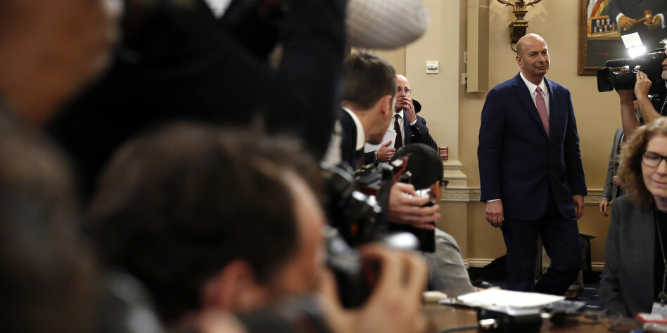 IMG Bild: Der wohl wichtigste Zeuge: EU-Botschafter Gordon Sondland bei der Impeachment-Anhörung