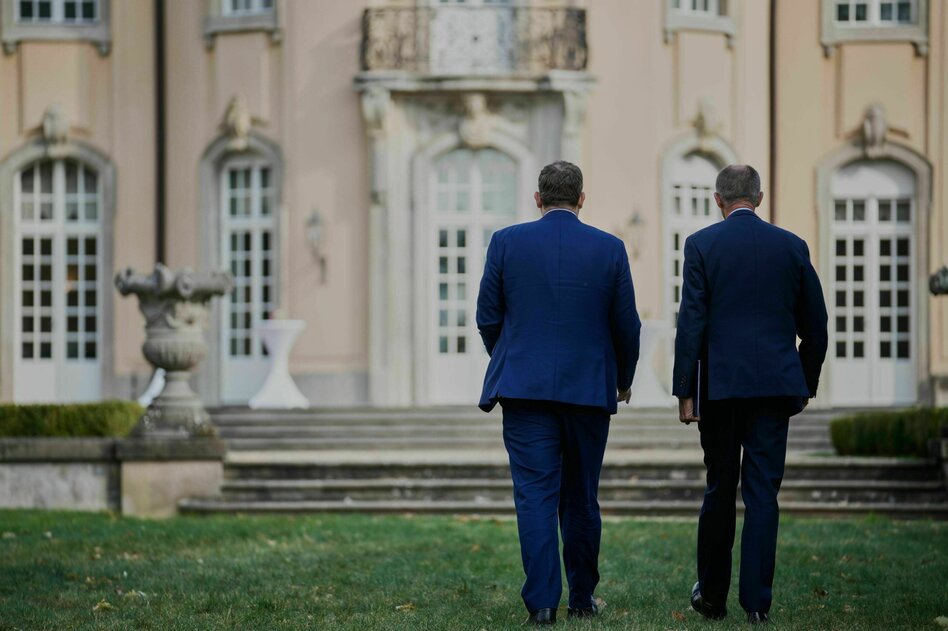 IMG Bild: Zeigen dem Sozialstaat den Rücken: Kanzler Friedrich Merz, CDU (r), und sein Finanzminister Lars Klingbeil, SPD (l)