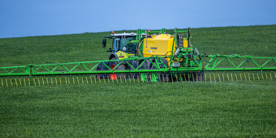 IMG Bild: Ein Getreidefeld wird gedüngt:Der Bundesrat blockiert das Gesetz gegen Überdüngung