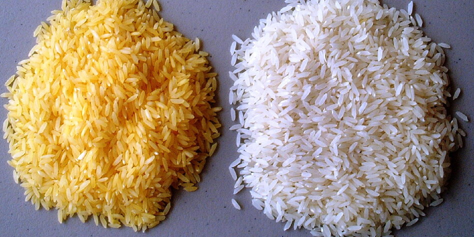 IMG Bild: Goldener Reis, weißer Reis. Viel Vitamin A, wenig Vitamin A.