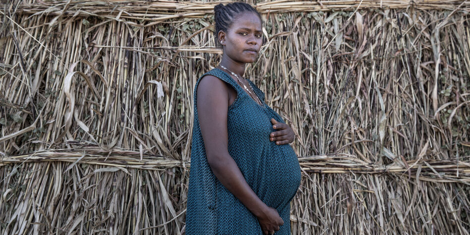 IMG Bild: Die schwangere Eileen Alfao aus Tigray lebt jetzt in einem Flüchtlingslager im Sudan