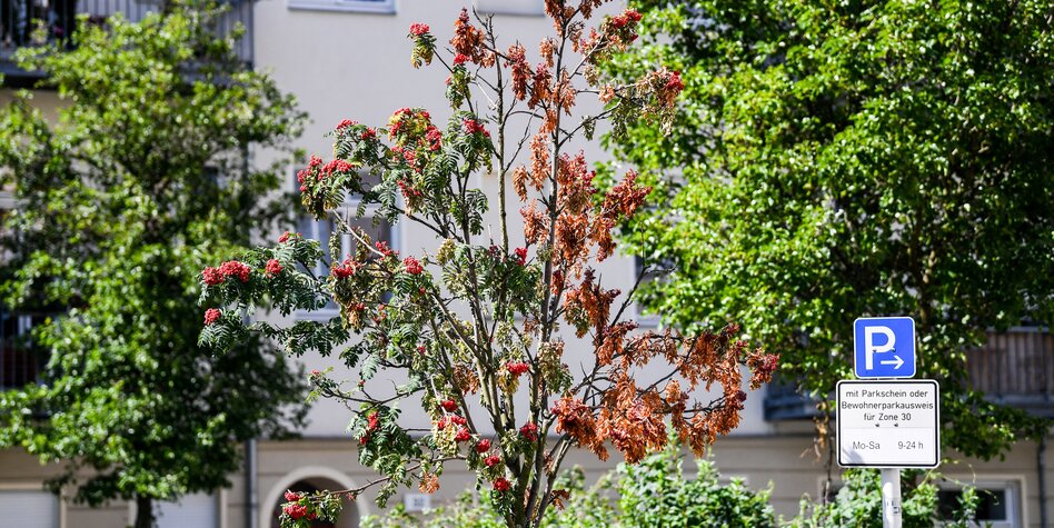 IMG Bild: So sieht's aus, wenn gepflanzt, aber nicht gepflegt wird: vertrocknender Jungbaum