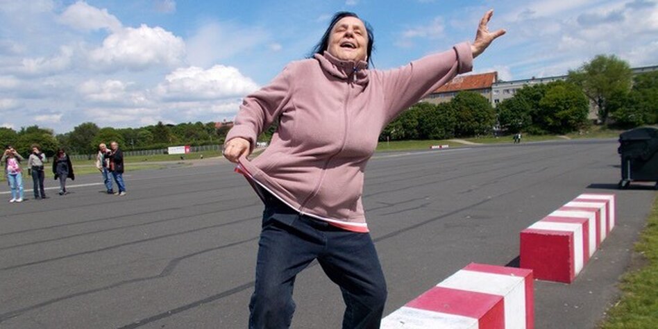 IMG Bild: In Pose geschmissen: Hildegard Wittur auf dem Tempelhofer Feld