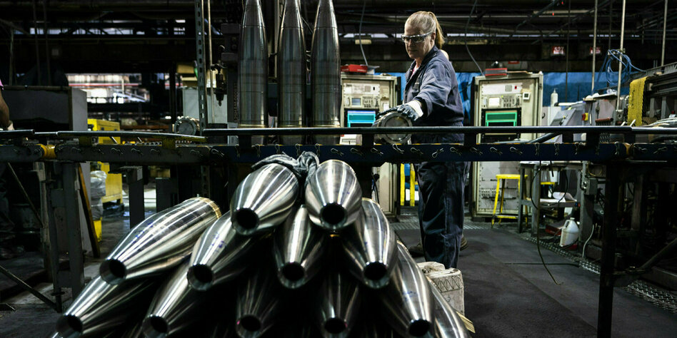 IMG Bild: USA laden nach: Artilleriegeschosse des Kalibers 155 Millimeter lagern in einer Munitionsfabrik in Scranton, Pennsylvania