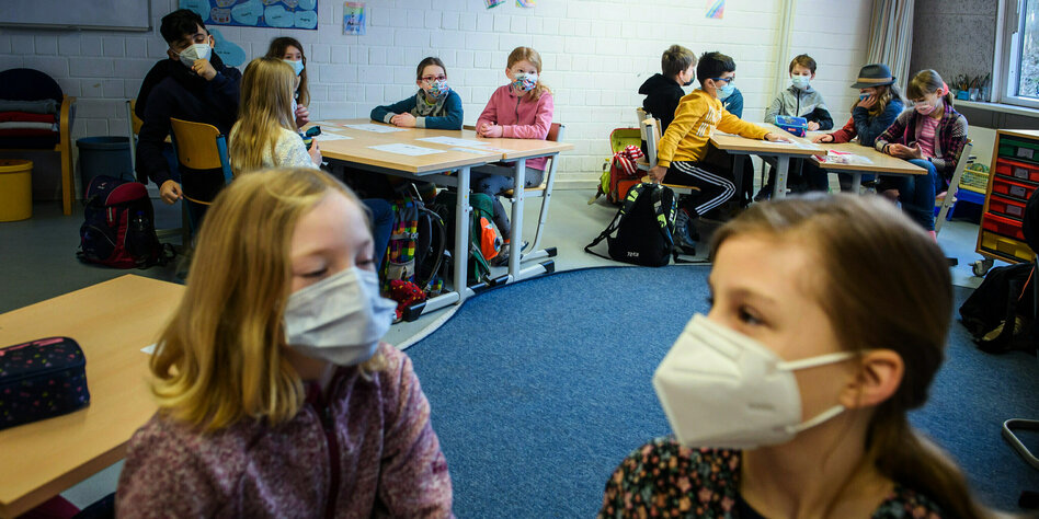 IMG Bild: Bisher können sie sich nur mit Masken schützen: Viertklässler*innen in Kiel