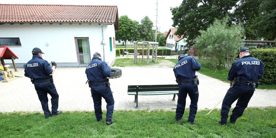 IMG Bild: Polizisten bei der Spurensuche in der Umgebung des Wohnhauses von Lübcke