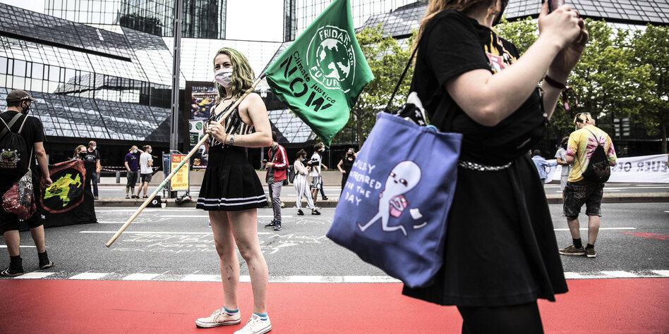 IMG Bild: Der richtige Ort für Protest: Fridays-For-Future-Demo vor der Zentrale der Deutschen Bank