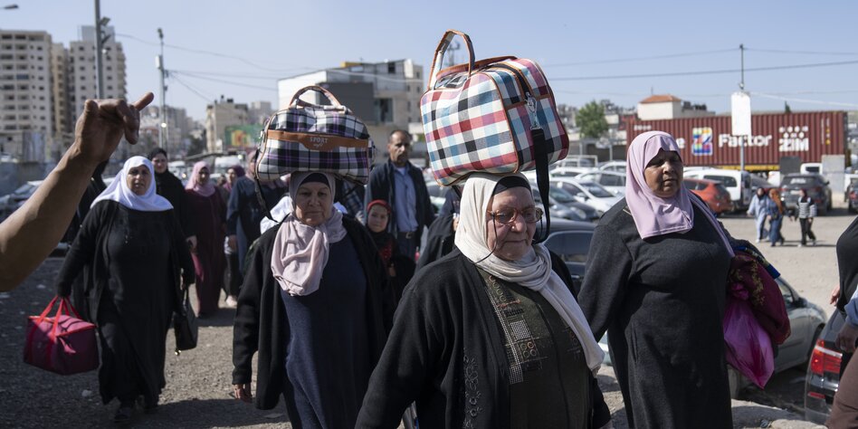 IMG Bild: Palästinenser:innen an einem der Checkpoints zwischen Westjordanland und Ostjerusalem