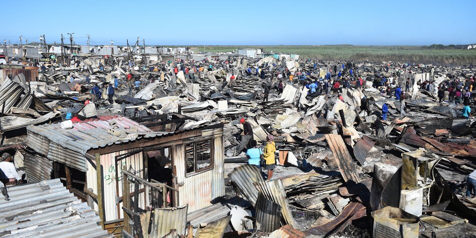 > Im Township Masiphumelele bei Kapstadt macht ein Großbrand Tausende