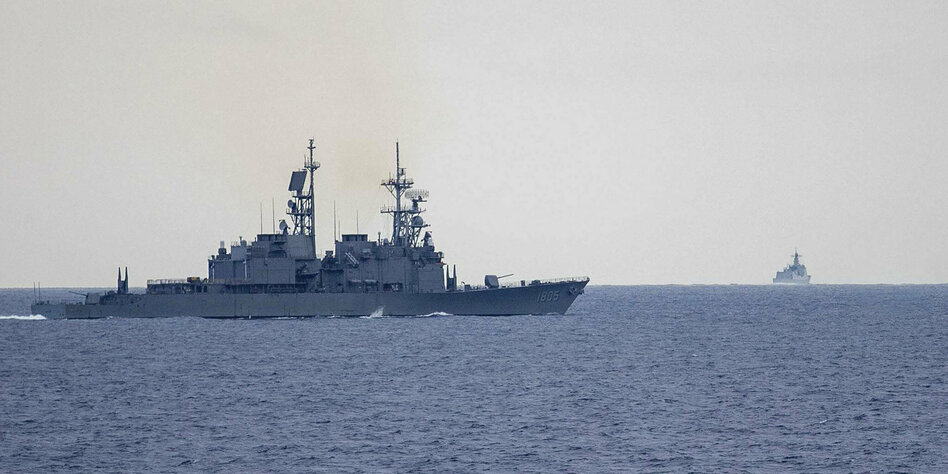 IMG Bild: Ein taiwanischer Zerstörer beobachtet den chinesischen Zerstörer im Hintergrund in der Nähe von Taiwan