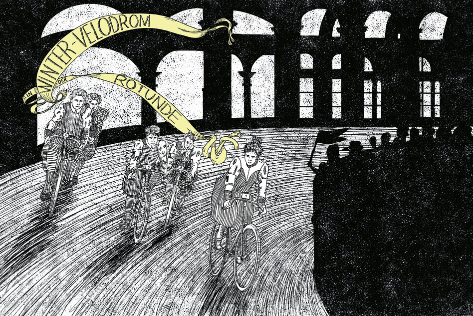 1897 ist es so weit. Cenzi fährt auf dem Holzoval der Wiener Rotunde