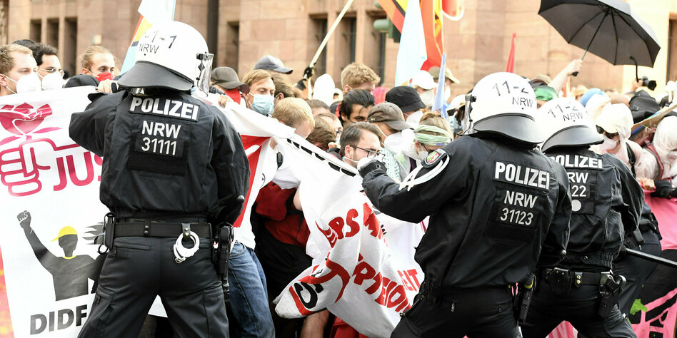 > 2021 ging die Polizei in NRW hart gegen Demos für Versammlungsfreiheit