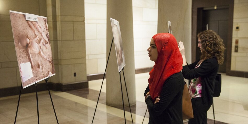 IMG Bild: Die Fotos in einer Ausstellung in Washington dokumentieren die Verbrechen des Assad-Regimes