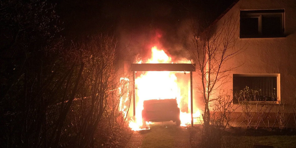 IMG Bild: Einer der Anschläge: Das angezündete Auto eines Linkspartei-Politikers am 1. Februar 2018