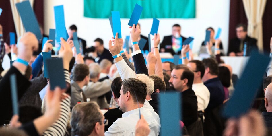 IMG Bild: Delegierte des sächsischen Landesverbands der AfD beim vergangenen Parteitag in Klipphausen