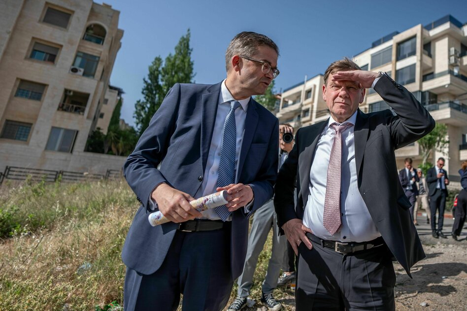 IMG Bild: Ein Blick über Israels Siedlungspolitik: Außenminister Wadephul beim Besuch der palästinensischen Gebiete Anfang Mai