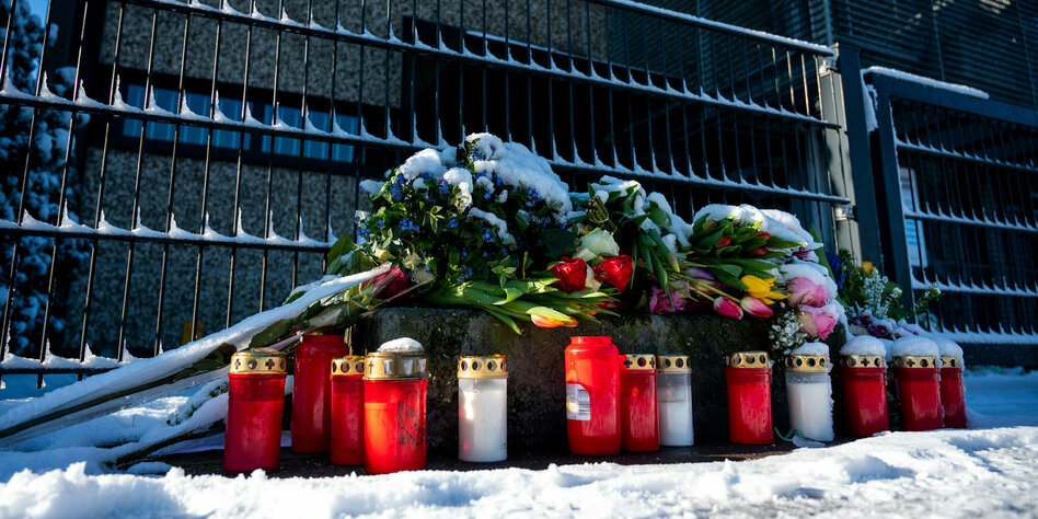 IMG Bild: Nach der Gewalttat bleibt die Trauer: Abgelegte Kerzen und Blumen am Tatort