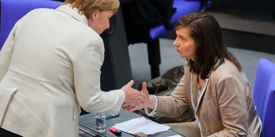 IMG Bild: Im Plenum des Bundestags: Kanzlerin Merkel und Grünen-Fraktionschefin Göring-Eckardt