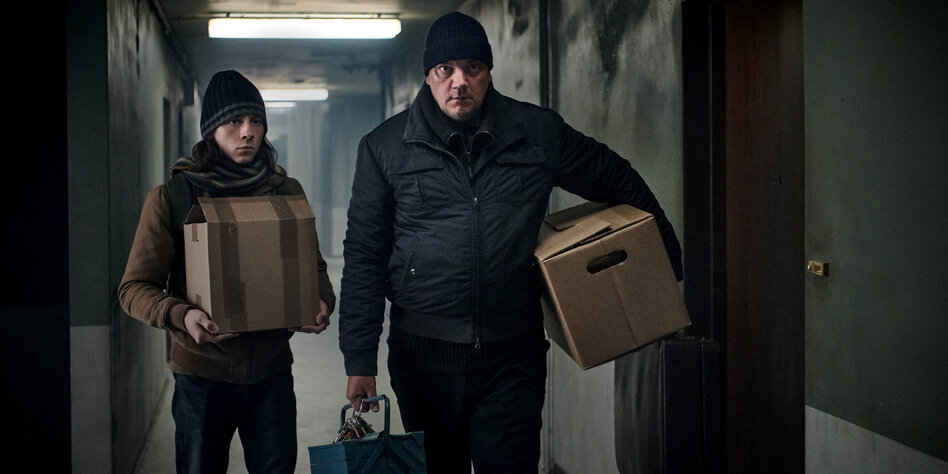 IMG Bild: Juri (Tristan Göbel) und sein Vater Jaschek (Charly Hübner) ziehen ein