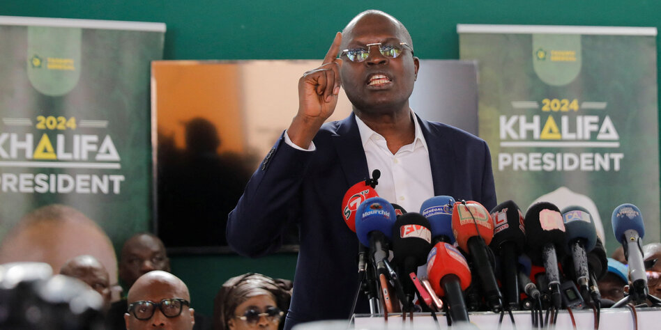IMG Bild: Der senegalesische Oppositionskandidat Khalifa Sall bei einer Pressekonferenz am 16. Februar