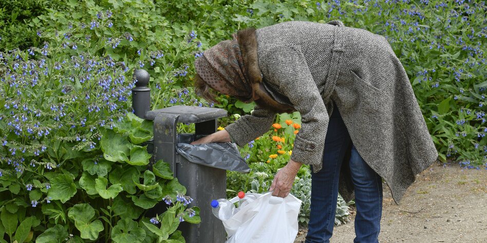IMG Bild: Sichtbare Armut: Flaschensammlerin im Park