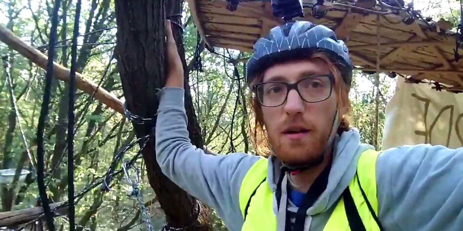 IMG Bild: Steffen Meyn in einem Video aus dem Baumhaus, das er auf Twitter veröffentlichte