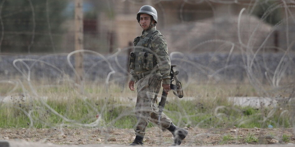 IMG Bild: Ein türkischer Soldat an der Grenze bei Ceylanpinar