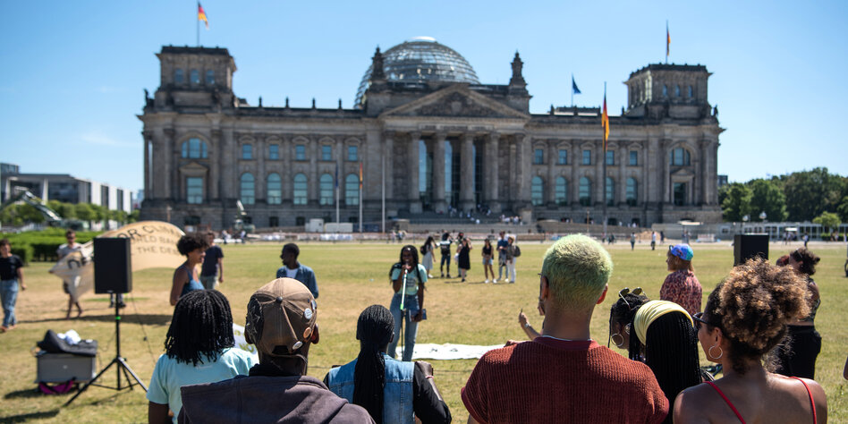 Wiese vor dem Reichstag in Berlin, ein Zwischenstopp auf dem Weg zum