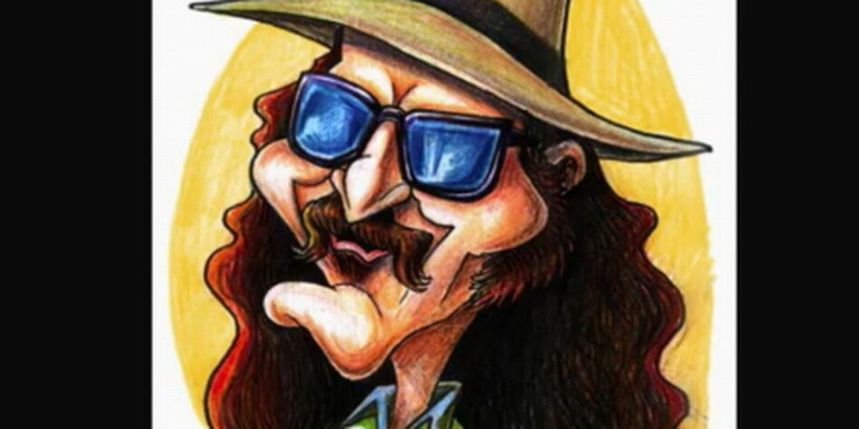 des Musikers, die ihn mit üppigem Schnurrbart, langen Haaren und