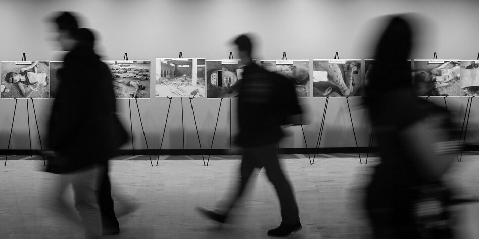 IMG Bild: Ausstellung der aus Syrien geschmuggelten Fotos des Militärfotografen „Cäsar“ in New York