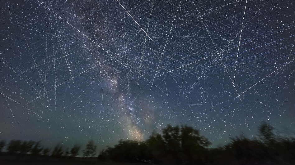 IMG Bild: Wer darf da hoch? Diese Langzeitbelichtung aus Kanada zeigt unter anderem Starlink-Satelliten
