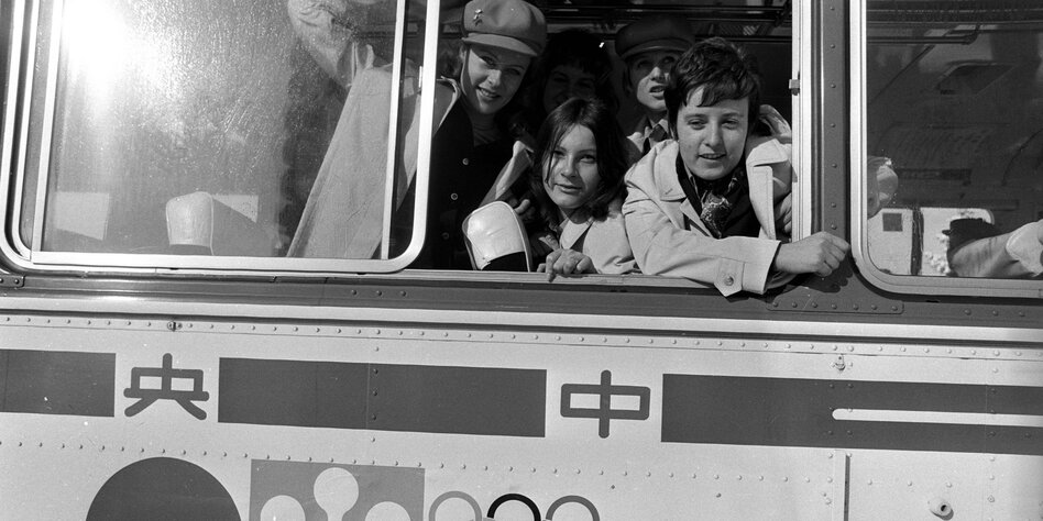 IMG Bild: Rein ins Vergnügen: Westdeutsche Sportlerinnen bei der Ankunft im olympischen Dorf 1972