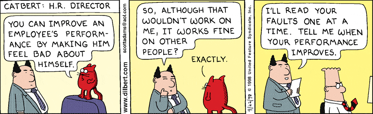 people?" Catbert says, "Exactly." The boss stands behind Dilbert