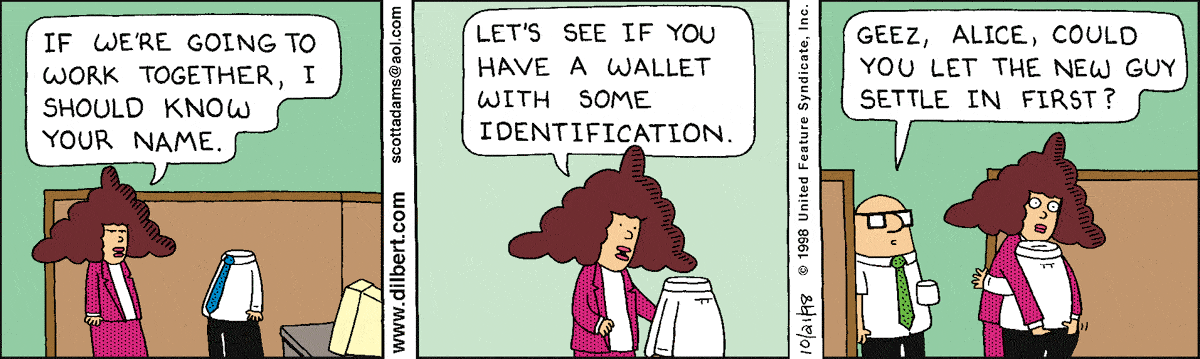 Wally says, "Geez, Alice, could you let the new guy settle in first?"