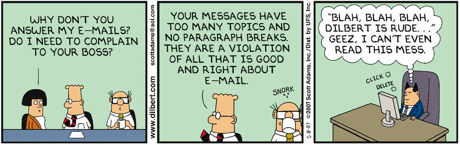 blah, blah, Dilbert is rude...' Geez, I can't even read this mess."