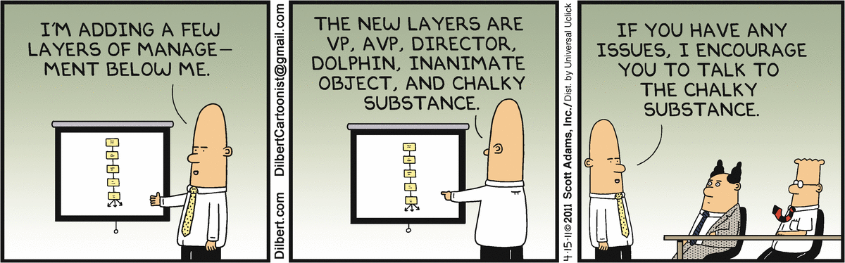 are VP, AVP, Director, dolphin, inanimate object, and chalky