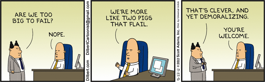 Boss: Are we too big to fail? CEO: Nope. We're more like two pigs that
