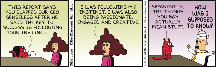 Catbert: Apparently the things you say actually mean stuff. CEO: How