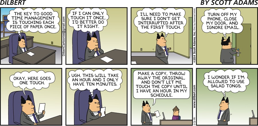 phone, close my door, and ignore email. Okay, here goes one touch.