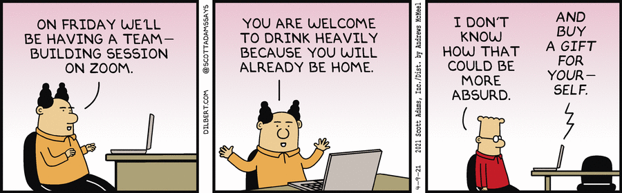 dilbert: i don't know how that could be more absurd. boss: and buy a