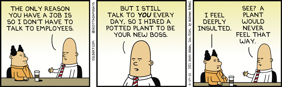 plant to be your new boss. boss: i feel deeply insulted. ceo: see? a